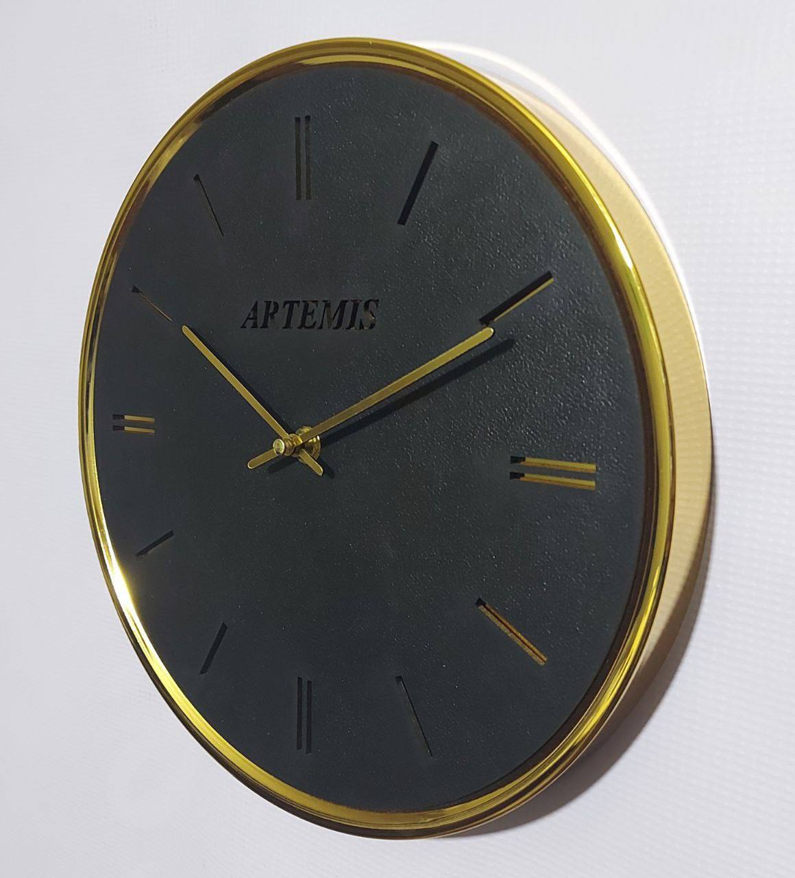 ساعت دیواری آرتمیس آبکاری طلایی صفحه مشکی قطر ۲۱cm کد ۶۰۱۵ D