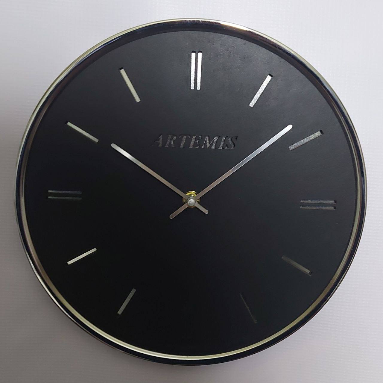 ساعت دیواری آرتمیس آبکاری نقره ای صفحه مشکی قطر ۲۱cm کد ۶۰۱۵ D