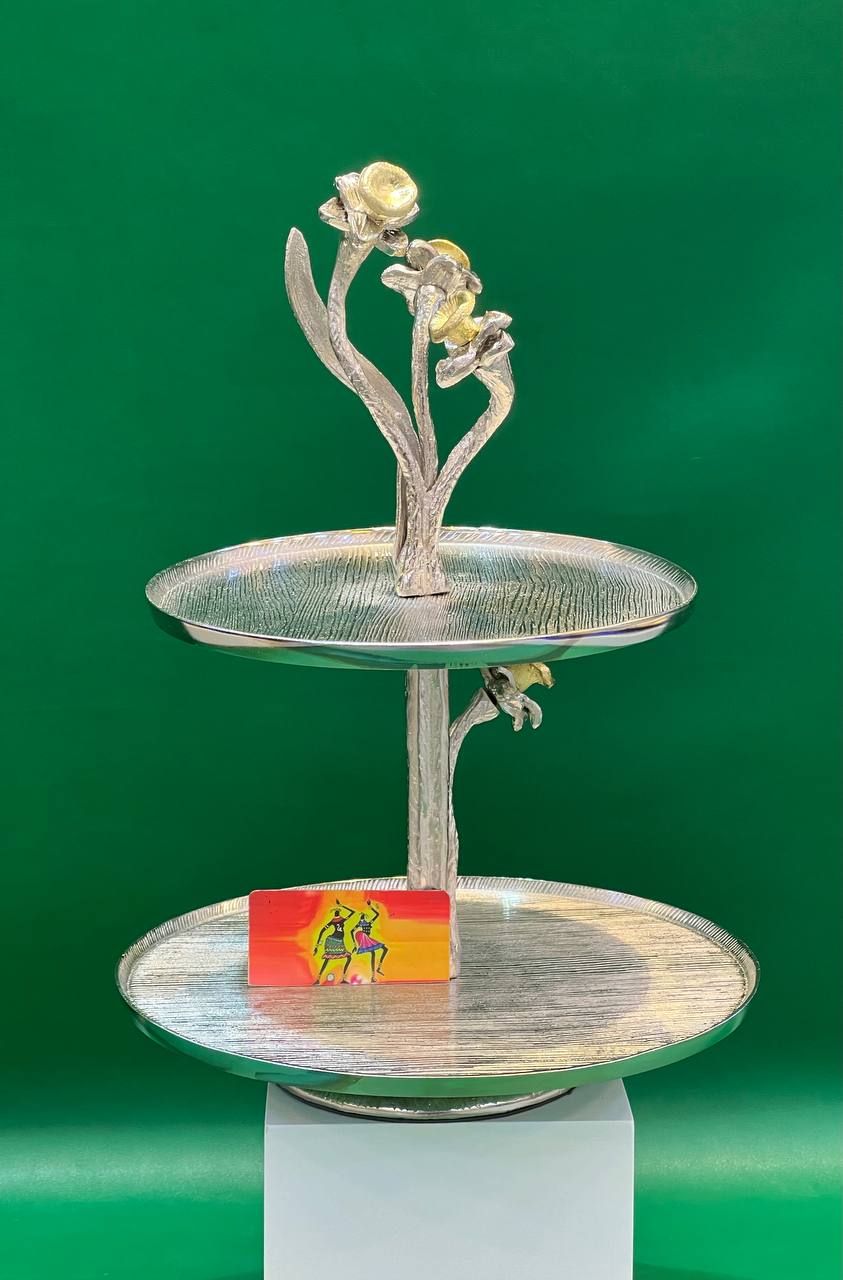 سرویس 8 تکه آلمینیوم مدل اطلس شلمل : 1- میوه خوری 2-آجیل خوری 3-شیرینی خوری 4-شیرینی خوری دوطبقه 5-شکلات خوری 6-قندان 7-اردو سه خانه 8-سینی
